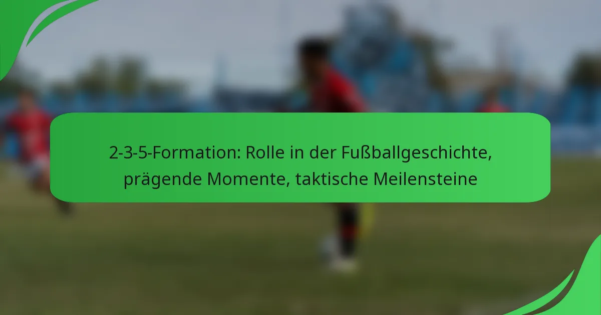 Die 2-3-5-Formation, ein klassisches taktisches System im Fußball, hat eine bedeutende Rolle bei der Gestaltung der Geschichte des Spiels gespielt. Ihre prägenden Momente umfassen wichtige Spiele und das Aufkommen legendärer Teams, die diese Formation nutzten, was zu taktischen Innovationen führte, die zukünftige Strategien beeinflussten.