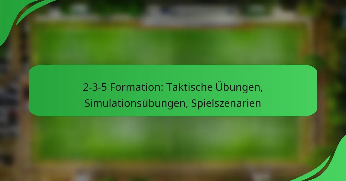 Die 2-3-5-Formation ist ein klassisches Fußballsystem, das einen aggressiven Angriffsstil betont, mit der Anordnung von zwei Verteidigern, drei Mittelfeldspielern und fünf Stürmern. Um ihre Effektivität zu maximieren, können Trainer taktische Übungen und Simulationstrainings implementieren, die sich auf Positionierung und Bewegung konzentrieren und die Spieler auf reale Spielszenarien vorbereiten. Diese Übungen verbessern nicht nur die Teamkoordination, sondern helfen den Spielern auch, ihre Rollen innerhalb der Formation zu verinnerlichen, was sicherstellt, dass die Mannschaft am Spieltag gut vorbereitet ist.